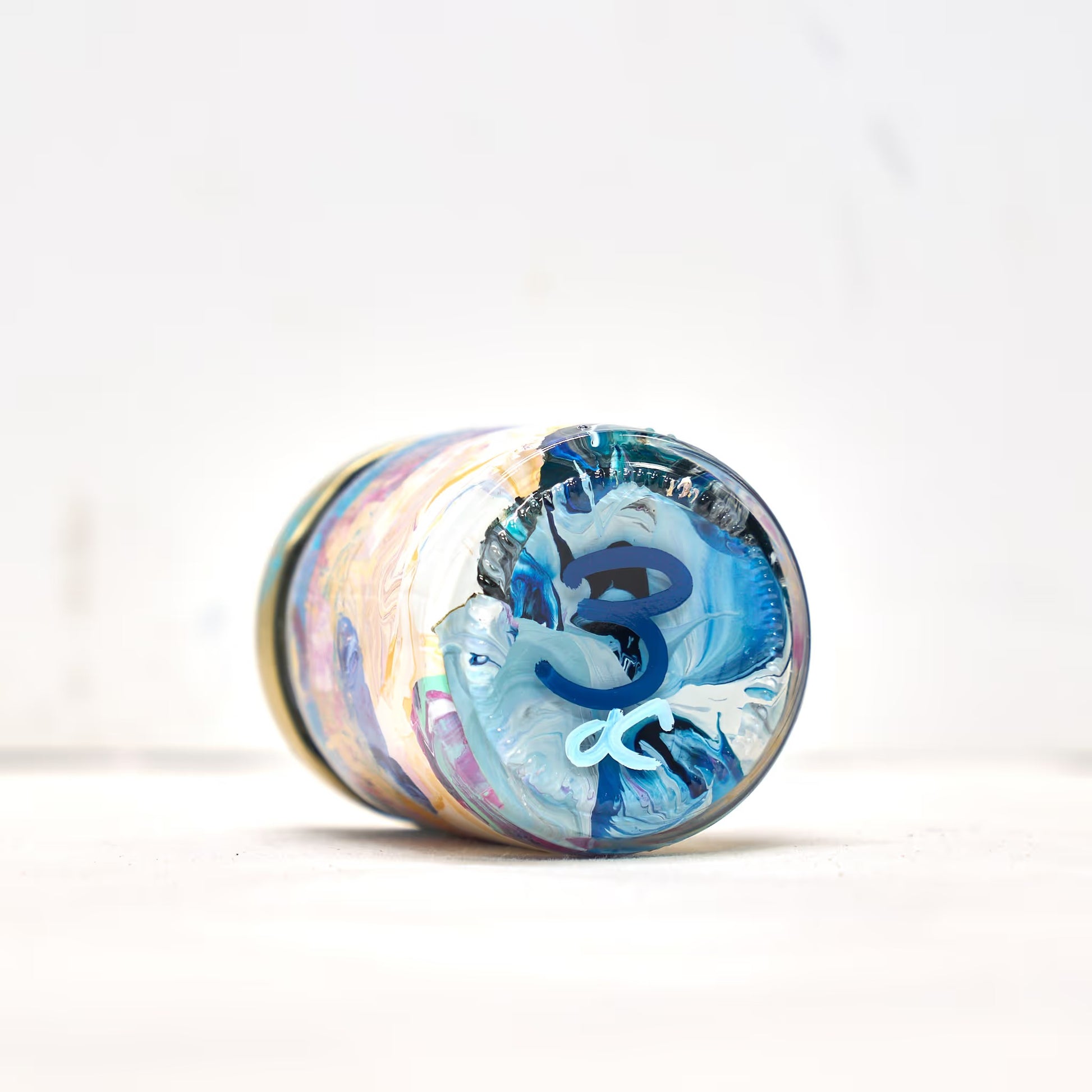 This jar was created over time with left over oil paint from my paintings… layering to the top of the jar over time.