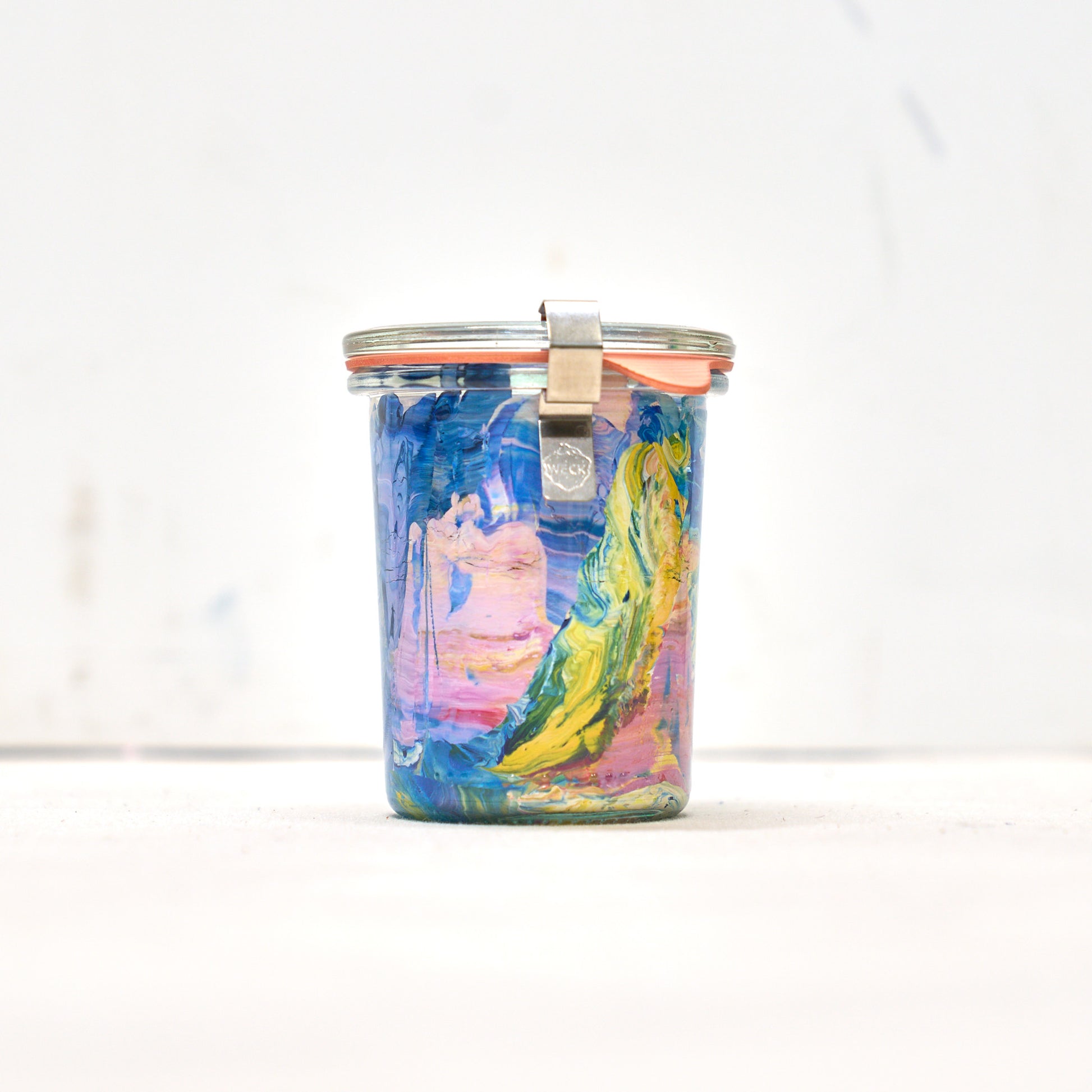 I made an oil painting, photographed it while wet, and then scraped the paint into this jar.